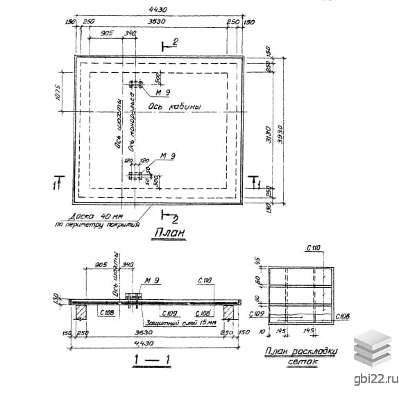 Плиты перекрытия шахт П 36 размеры: длина, мм.: 4430, ширина, мм.: 3930, высота, мм.: 130, вес, кг.: 5650, марка бетона: . Изделия относятся к категории Шахты лифтов железобетонные-Плиты перекрытия шахт и изготавливаются по технической документации согласно серия 1.489-1
