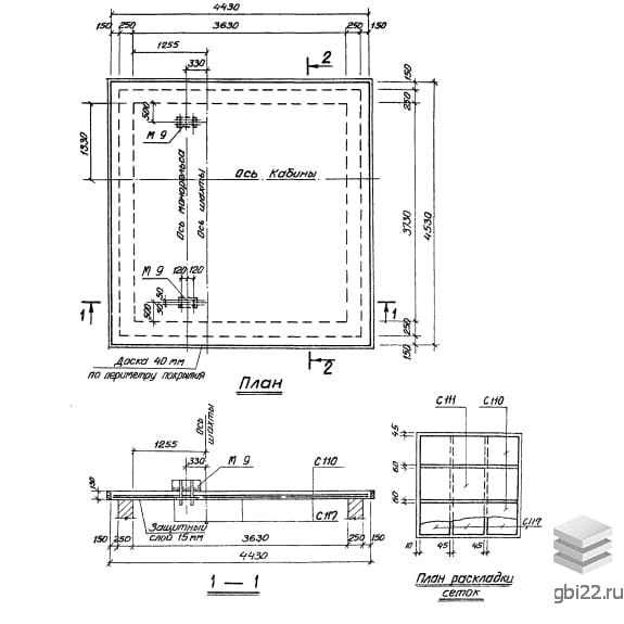 Плиты перекрытия шахт П 45 размеры: длина, мм.: 4430, ширина, мм.: 4530, высота, мм.: 130, вес, кг.: 6550, марка бетона: . Изделия относятся к категории Шахты лифтов железобетонные-Плиты перекрытия шахт и изготавливаются по технической документации согласно серия 1.489-1