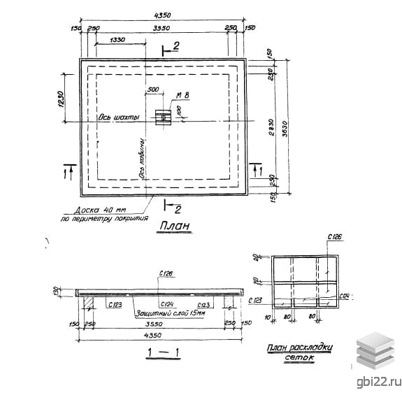 Плиты перекрытия шахт П 57 размеры: длина, мм.: 4350, ширина, мм.: 3630, высота, мм.: 130, вес, кг.: 5125, марка бетона: . Изделия относятся к категории Шахты лифтов железобетонные-Плиты перекрытия шахт и изготавливаются по технической документации согласно серия 1.489-1