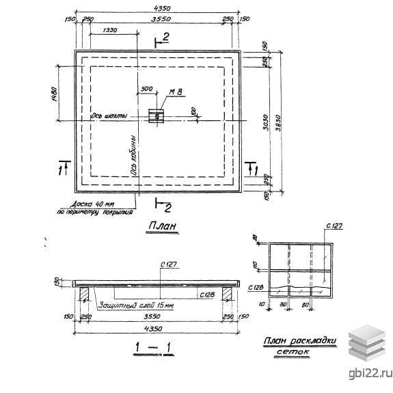 Плиты перекрытия шахт П 59 размеры: длина, мм.: 4350, ширина, мм.: 3830, высота, мм.: 130, вес, кг.: 5400, марка бетона: . Изделия относятся к категории Шахты лифтов железобетонные-Плиты перекрытия шахт и изготавливаются по технической документации согласно серия 1.489-1