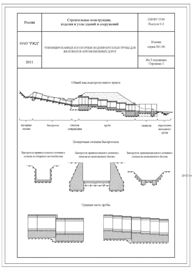 | Название стандарта | Унифицированные косогорные водопропускные трубы для железных и автомобильных дорог. |