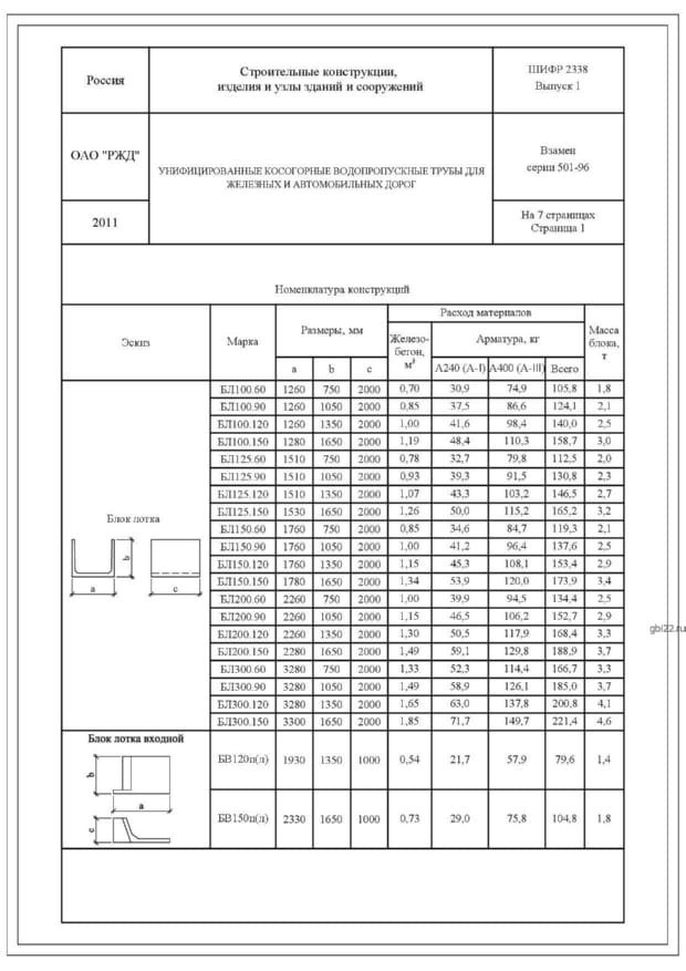 | Название стандарта | Унифицированные косогорные водопропускные трубы для железных и автомобильных дорог. |