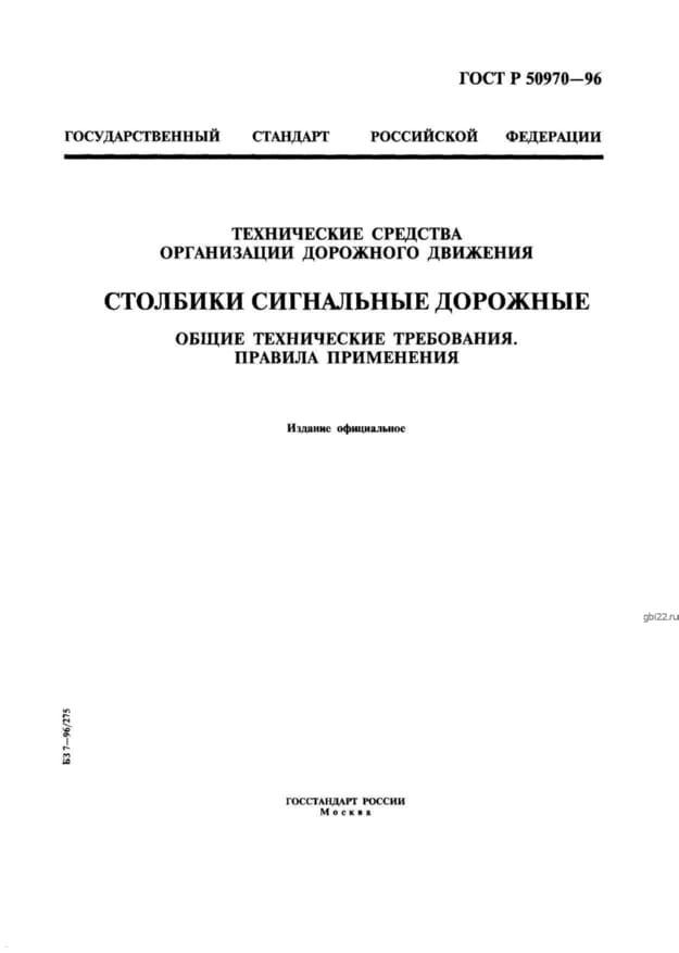 | Название стандарта | Технические средства организации дорожного движения. Столбики сигнальные дорожные. Общие технические требования. Правила применения. |