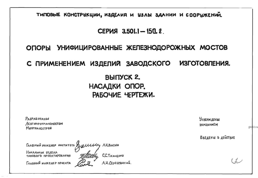 | Название стандарта | Опоры унифицированные железнодорожных мостов с применением изделий заводского изготовления. |