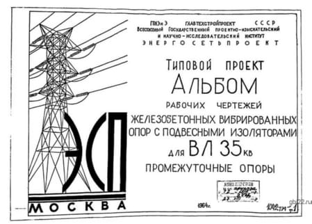 | Название стандарта | Альбом рабочих чертежей железобетонных вибрированных опор с подвесными изоляторами для ВЛ 35 кВ. Промежуточные опоры. |