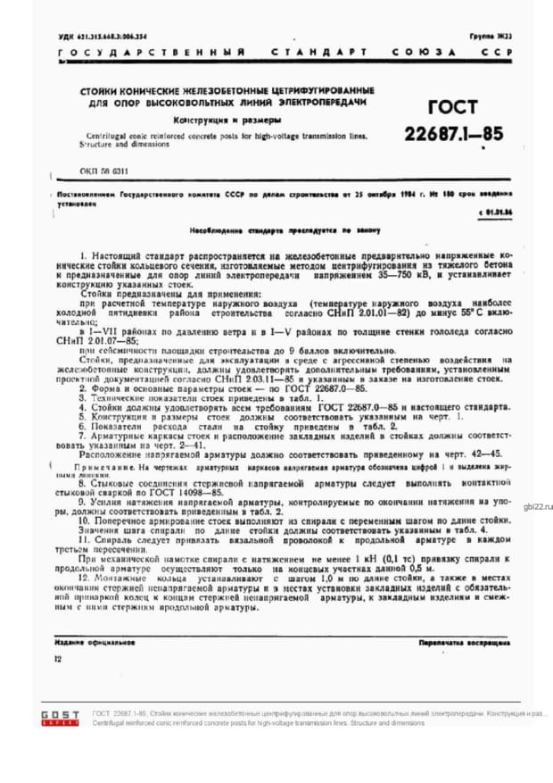 | Название стандарта | Стойки конические железобетонные центрифугированные для опор высоковольтных линий электропередачи. Конструкция и размеры. |