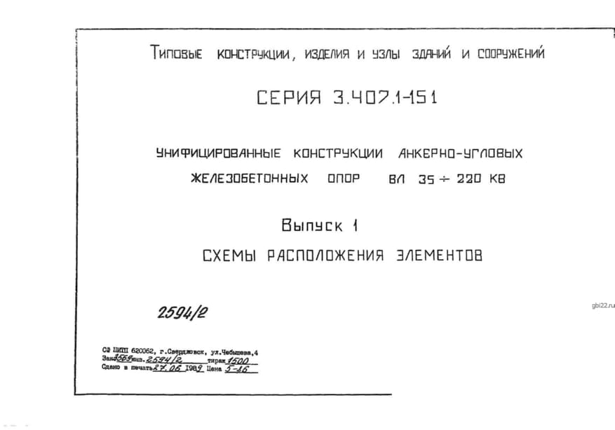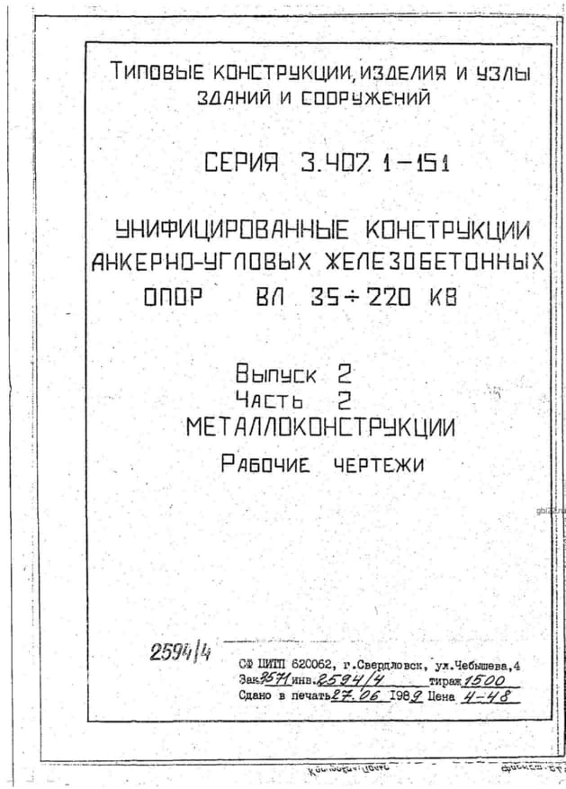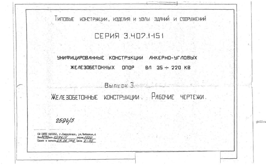 | Название стандарта | Унифицированные конструкции анкерно-угловых железобетонных опор ВЛ 35-220 кВ. |
