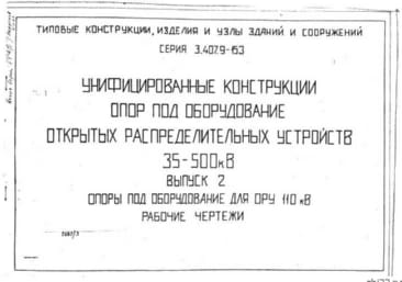 | Название стандарта | Унифицированные конструкции опор под оборудование открытых распределительных устройств 35 - 500 кВ. |