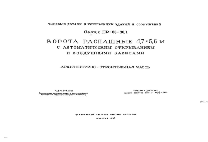 | Название стандарта | Ворота распашные 4,7х5,6 м с автоматическим открыванием и воздушными завесами. Архитектурно-строительная часть. |