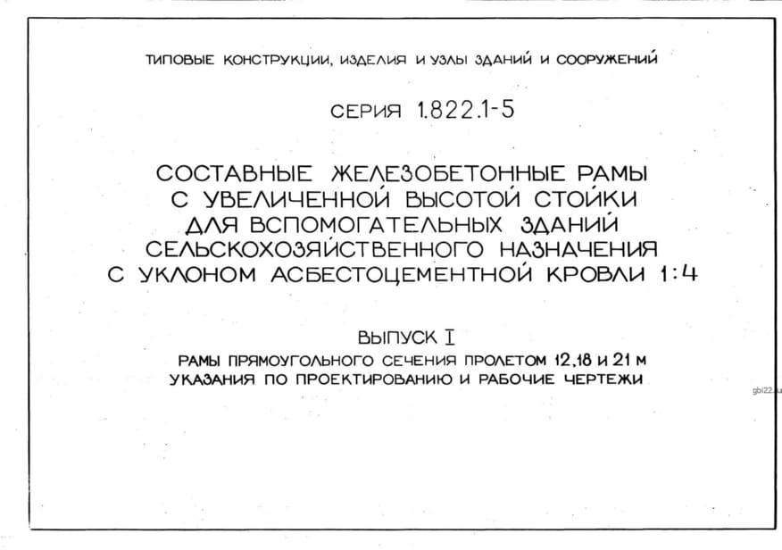 | Название стандарта | Составные железобетонные рамы с увеличенной высотой стойки для вспомогательных зданий сельскохозяйственного назначения с уклоном асбестоцементной кровли 1:4. |