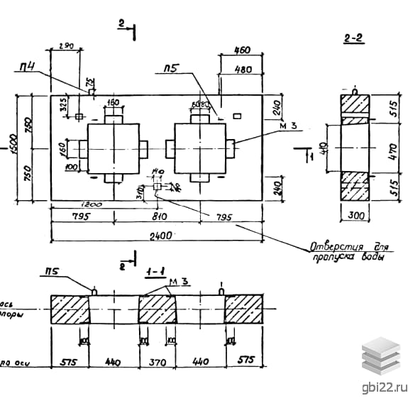 Опоры НО 350-50 представляют собой сборные железобетонные плиты прямоугольной формы с металлическими патрубками. Конструкции оснащены 1-2 сквозными отверстиями (прямоугольными или восьмигранными), размеры которых зависят от типоразмера изделия.