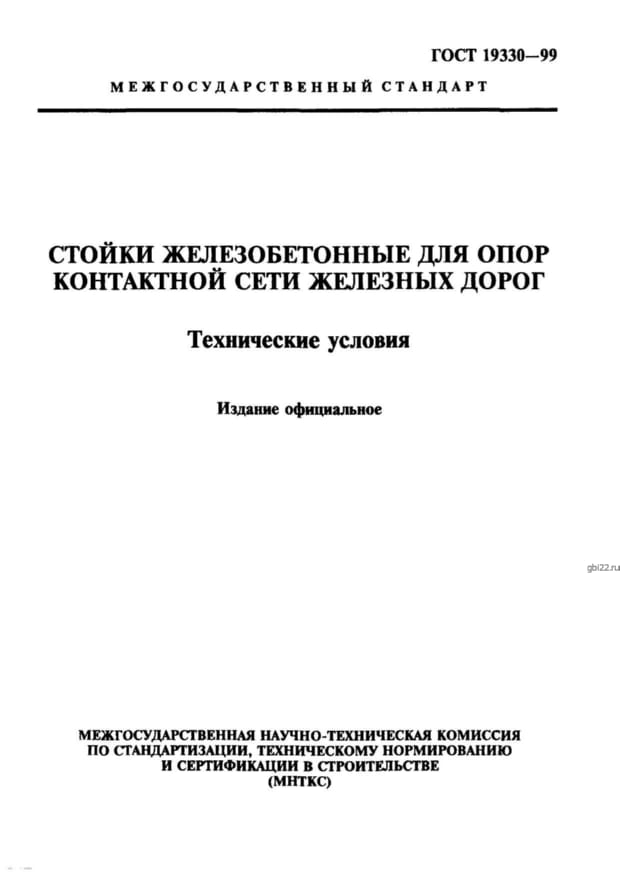 | Название стандарта | Стойки железобетонные для опор контактной сети железных дорог. Технические условия. |