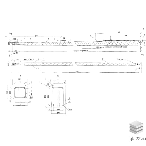 Стойка представляет собой трапециевидную балку с сужением на одном торце. Боковые грани оснащены отверстиями ?24–28 мм. Изделия производятся из бетона класса В30 (М400) с армированием стальными стержнями и проволокой.