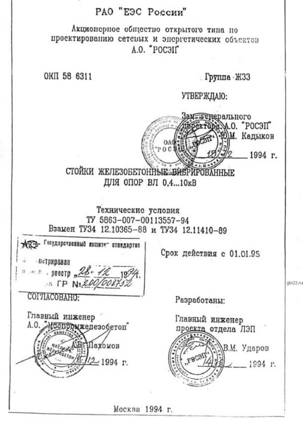| Название стандарта | Стойки железобетонные вибрированные для опор ВЛ 0.4...10кВ. |