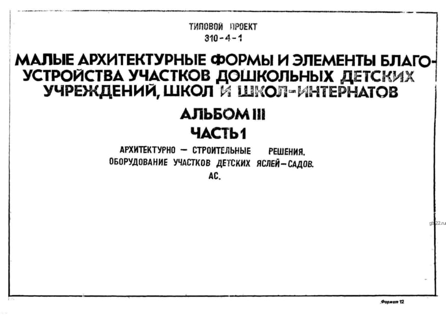 | Название стандарта | Малые архитектурные формы и элементы благоустройства участков дошкольных детских учреждений, школ и школ-интернатов. |