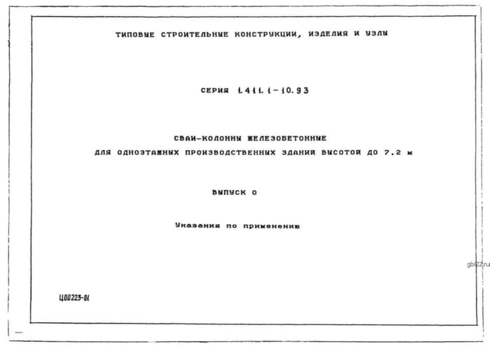 | Название стандарта | Сваи-колонны железобетонные для одноэтажных производственных зданий высотой до 7,2 м. |