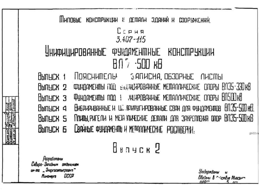 | Название стандарта | Унифицированные фундаментные конструкции ВЛ 35 - 500 кВ. |