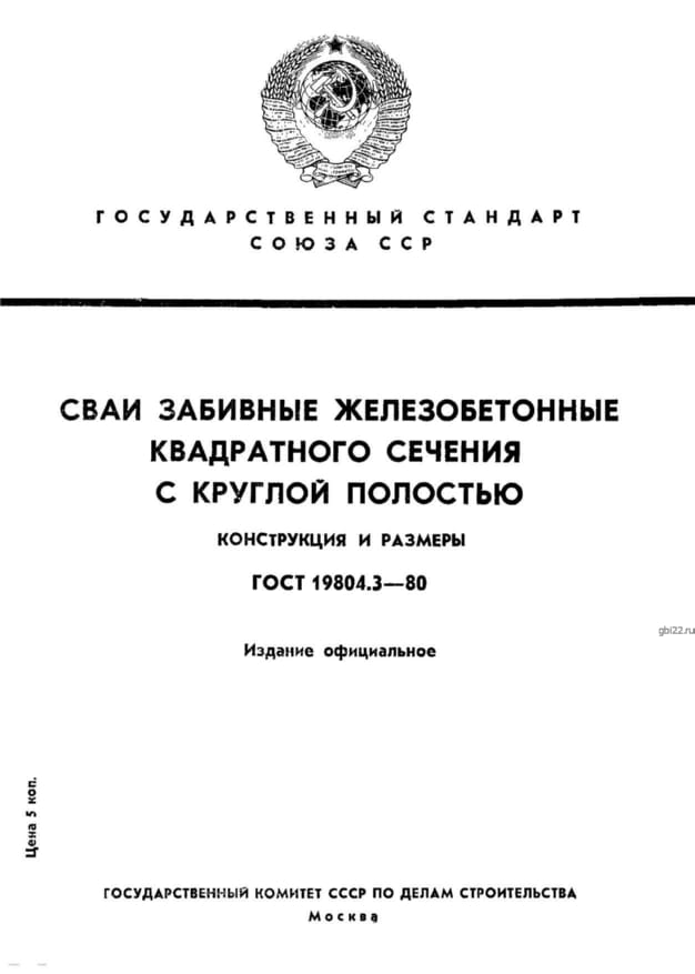 | Название стандарта | Сваи забивные железобетонные квадратного сечения с круглой полостью. Конструкция и размеры. |