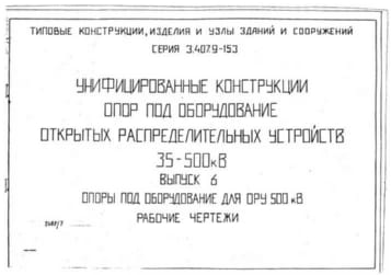 | Название стандарта | Унифицированные конструкции опор под оборудование открытых распределительных устройств 35 - 500 кВ. |