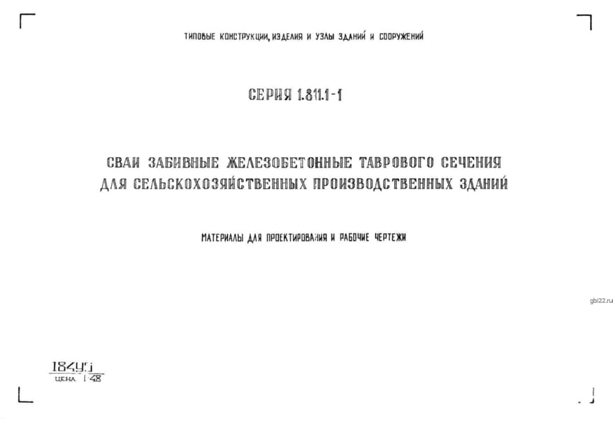 | Название стандарта | Сваи забивные железобетонные таврового сечения для сельскохозяйственных производственных зданий. Материалы для проектирования и рабочие чертежи. |