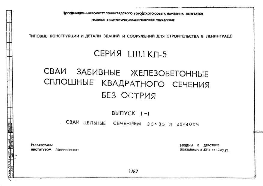 | Название стандарта | Сваи забивные железобетонные сплошного квадратного сечения без острия. |