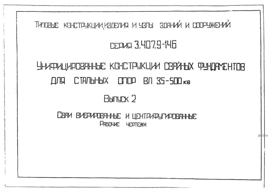 | Название стандарта | Унифицированные конструкции свайных фундаментов для стальных опор ВЛ 35 - 500 кВ. |