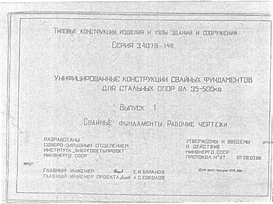 | Название стандарта | Унифицированные конструкции свайных фундаментов для стальных опор ВЛ 35 - 500 кВ. |