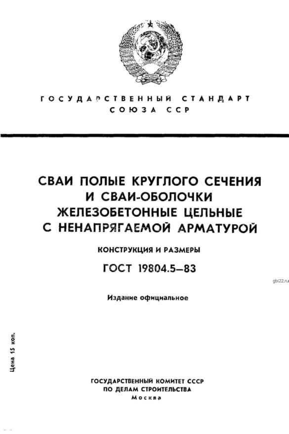 | Название стандарта | Сваи полые круглого сечения и сваи-оболочки железобетонные цельные с ненапрягаемой арматурой. Конструкция и размеры. |