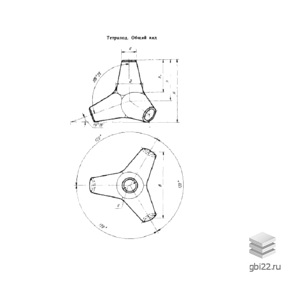 Тетрапод Т1 (ВСП 33-03-07) – это монолитный железобетонный блок с четырьмя конусообразными выступами, соединенными в центре. Конструкция обеспечивает устойчивость и надежное сцепление элементов при монтаже.