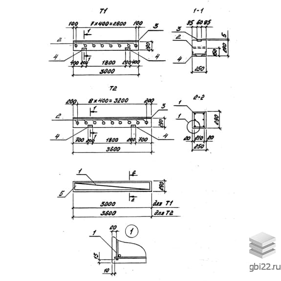 Траверсы Т 2-1 размеры: длина, мм.: 3600, ширина, мм.: 250, высота, мм.: 290, вес, кг.: 650, марка бетона: М200. Изделия относятся к категории Траверсы железобетонные-Траверсы и изготавливаются по технической документации согласно серия 3.015-2/77