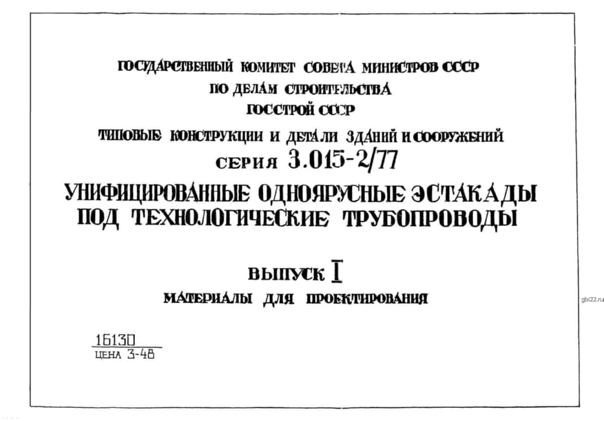 | Название стандарта | Унифицированные одноярусные эстакады под технологические трубопроводы. |