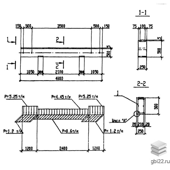 Траверсы Т 4-4 размеры: длина, мм.: 4800, ширина, мм.: 250, высота, мм.: 500, вес, кг.: 1500, марка бетона: М200. Изделия относятся к категории Траверсы железобетонные-Траверсы и изготавливаются по технической документации согласно серия 3.016.1-11