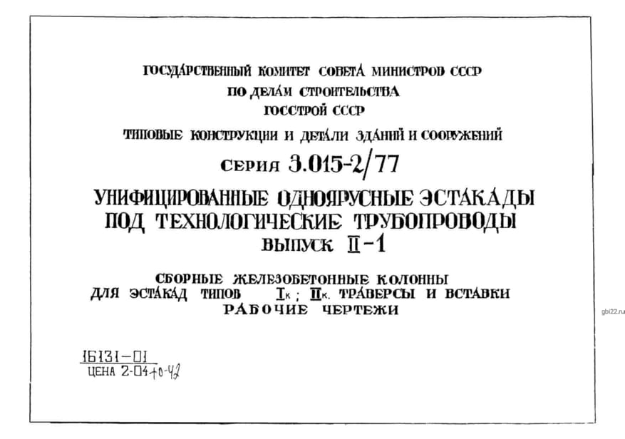 | Название стандарта | Унифицированные одноярусные эстакады под технологические трубопроводы. |