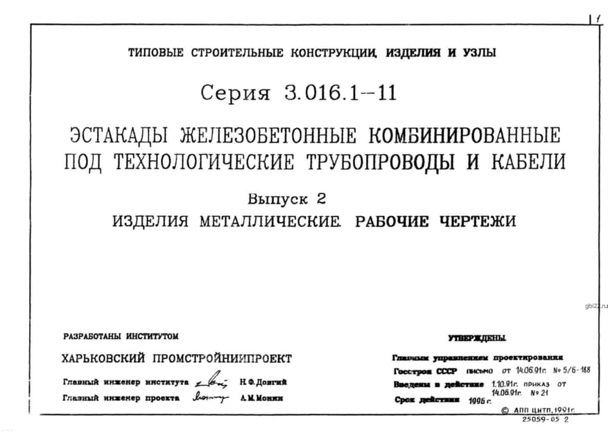 | Название стандарта | Эстакады железобетонные комбинированные под технологические трубопроводы и кабели. |