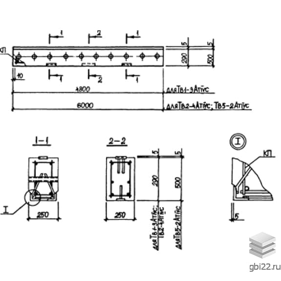 Траверсы ТВ 2-4 АтIVс размеры: длина, мм.: 6000, ширина, мм.: 250, высота, мм.: 290, вес, кг.: 110, марка бетона: М350. Изделия относятся к категории Траверсы железобетонные-Траверсы и изготавливаются по технической документации согласно серия 3.015-3/82