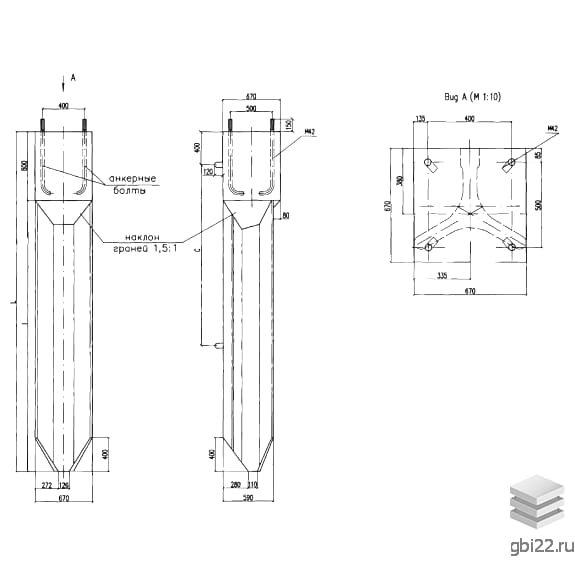 Фундаменты ТСП 5,0-4 размеры: длина, мм.: 5000, ширина, мм.: 670, высота, мм.: 670, вес, кг.: 2080, марка бетона: М400. Изделия относятся к категории Фундаменты железобетонные-Трехлучевые фундаменты сдвоенные и изготавливаются по технической документации согласно Рабочие чертежи 5255