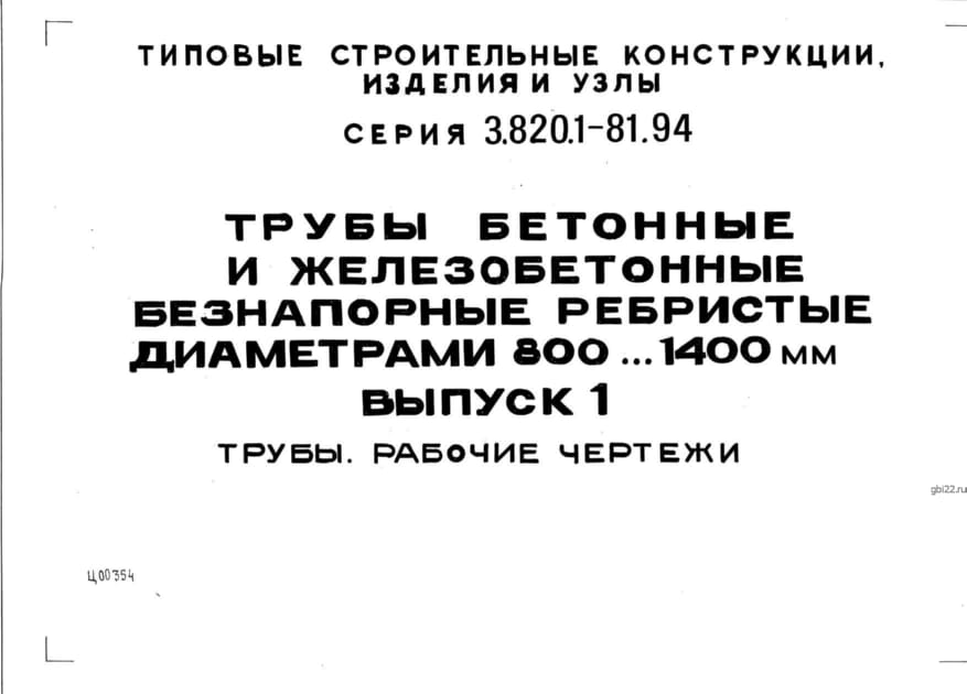 | Название стандарта | Трубы бетонные и железобетонные безнапорные ребристые диаметром 800…1400 мм. |