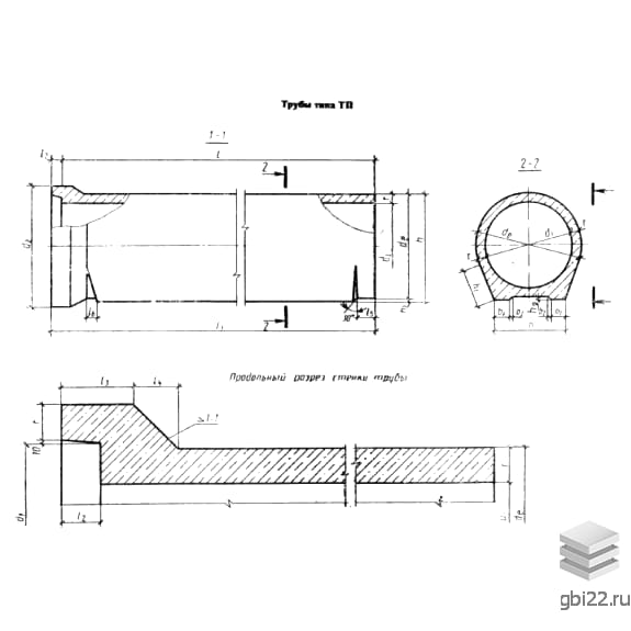 ТБП – труба цилиндрическая раструбная с упорным буртиком на втулочном конце и стыковым соединением, уплотняемым резиновым кольцом, с плоской или аналогичной подошвой;