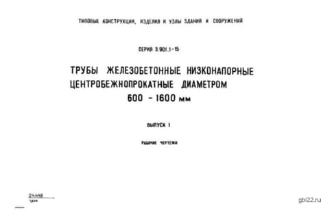 | Название стандарта | Железобетонные низконапорные центробежнопрокатные диаметром 600-1600 мм. |