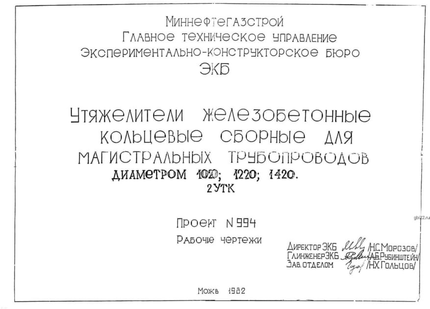 Утяжелители железобетонные кольцевые сборные для магистральных трубопроводов диаметром 1020, 1220, 1420 2-УТК. Рабочие чертежи.