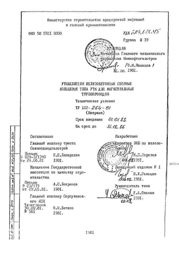 | Название стандарта | Утяжелители железобетонные сборные кольцевые типа УТК для магистральных трубопроводов. |