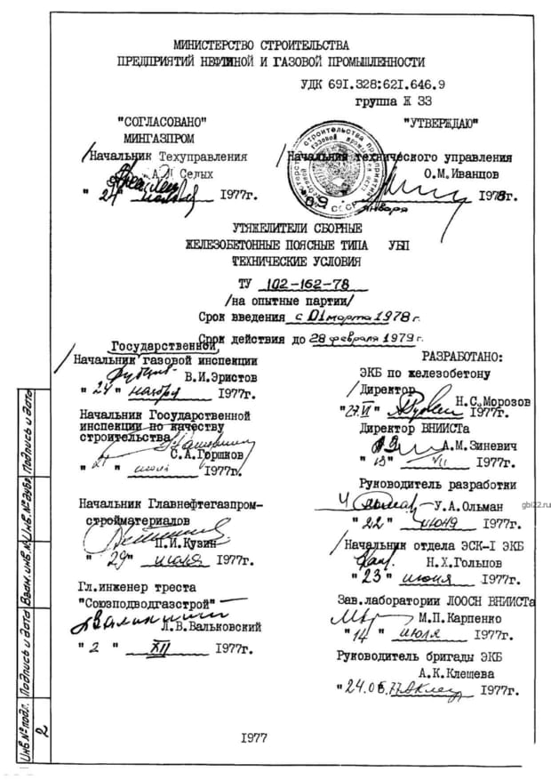 | Название стандарта | Утяжелители сборные железобетонные поясные типа УБП. |