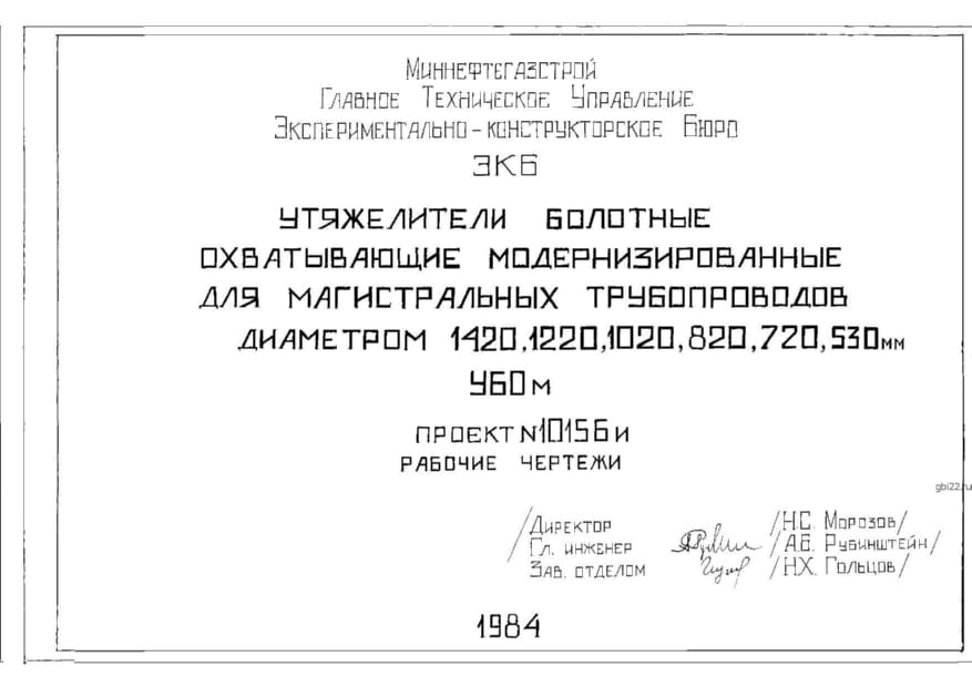 | Название стандарта | Утяжелители болотные охватывающие модернизированные для магистральных трубопроводов диаметром 1420, 1220, 1020, 820, 720, 530мм. |