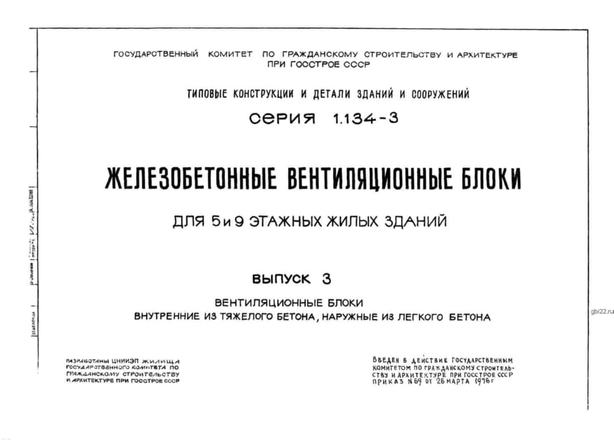 | Название стандарта | Железобетонные вентиляционные блоки для 5 и 9 этажных жилых домов. |
