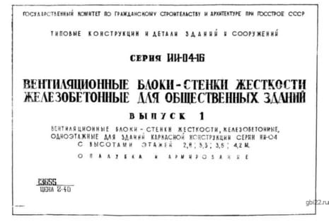 | Название стандарта | Вентиляционные блоки-стенки жесткости железобетонные для общественных зданий. |
