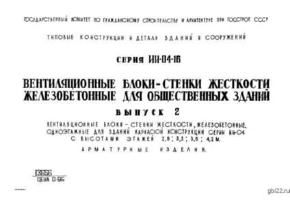 | Название стандарта | Вентиляционные блоки-стенки жесткости железобетонные для общественных зданий. |