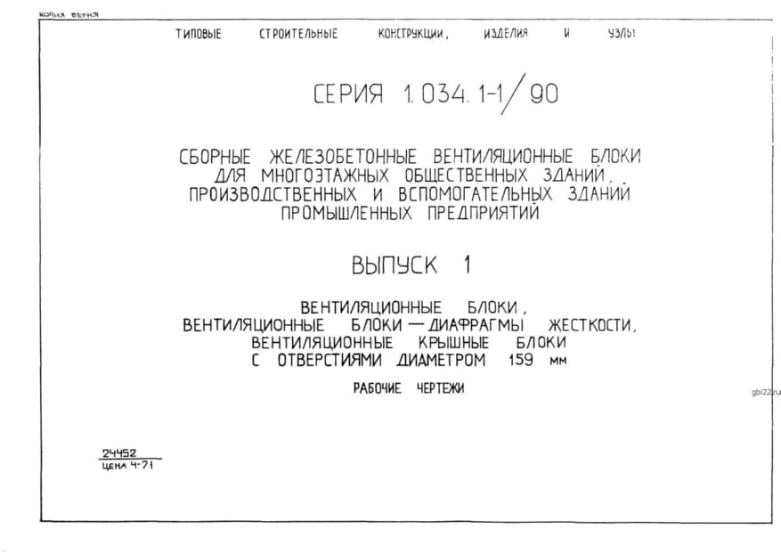 | Название стандарта | Сборные железобетонные вентиляционные блоки для многоэтажных общественных зданий, производственных и вспомогательных зданий, промышленных предприятий. |