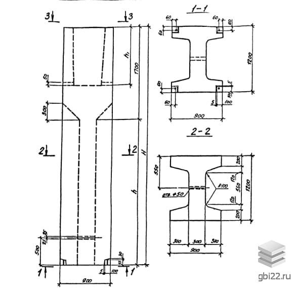 При наличии буквенных индексов в конце маркировки, «с» указывает на использование для опирания стальных колонн, а «к» – на наличие консолей для опирания ригелей и фундаментных балок.