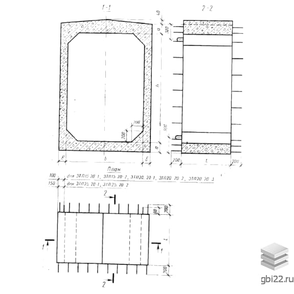 ЖБИ звенья ЗТП 20-20-2 производятся из бетона марки М300 (класс прочности В22.5) с армированием сталью марок А-І и А-ІІІ. Технические параметры: