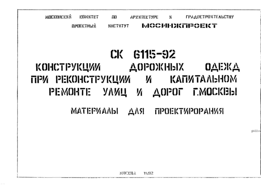 • Особенности усиления оснований и покрытий Актуальные стандарты СК 6115-92 помогают инженерам и проектировщикам создавать долговечные и безопасные дорожные одежды, соответствующие требованиям Москвы. Оптимальный выбор для специалистов в сфере дорожного строительства.